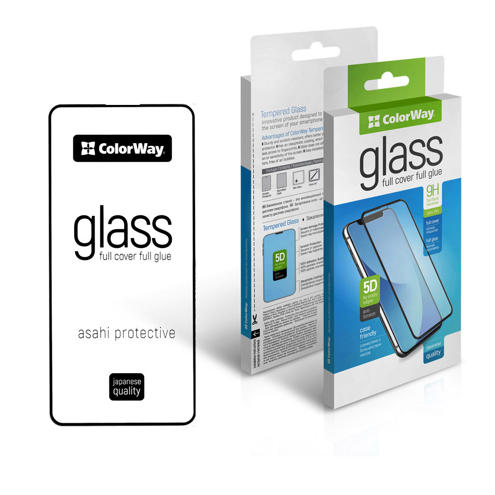 Захисне скло із повним клеєм ColorWay. Придбавши це скло, ви отримуєте якісний захист екрана вашого смартфона (захисне скло) з повним комплектом аксесуарів та інструкцією для самостійної установки. Перевага захисного скла ColorWay: