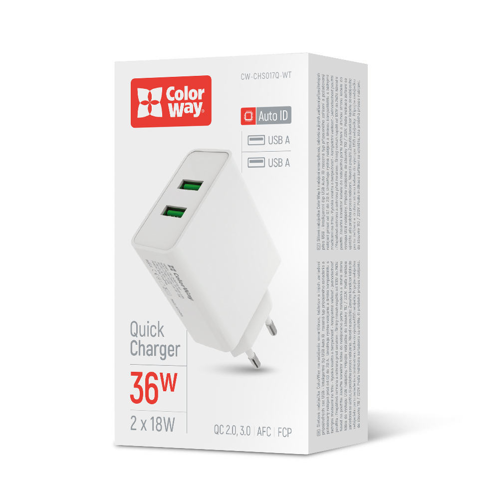Мережевий зарядний пристрій Colorway 1USB Quick Charge 3.0 (18W) V2 білий